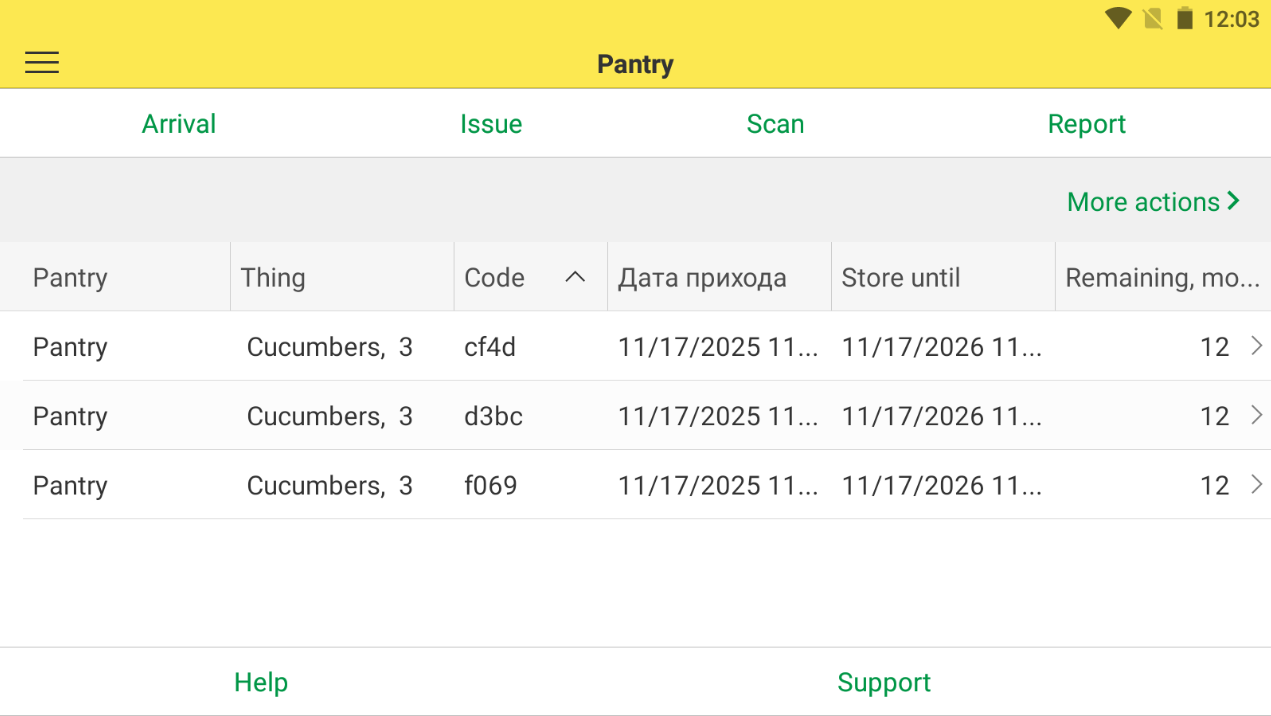 An app for tracking jars and other goods in a warehouse, fridge, or storeroom.